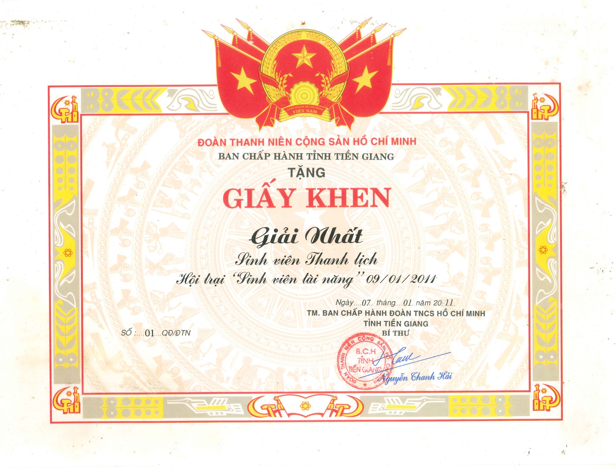 Giấy khen Ban Chấp hành tỉnh Tiền Giang năm 2011