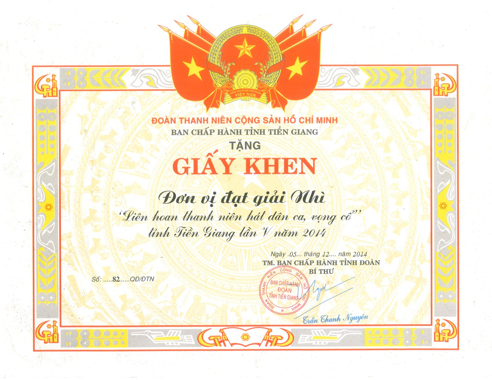 Đơn vị đạt giải Nhì Liên hoan thanh niên hát dân ca, vọng cổ tỉnh Tiền Giang lần V năm 2014