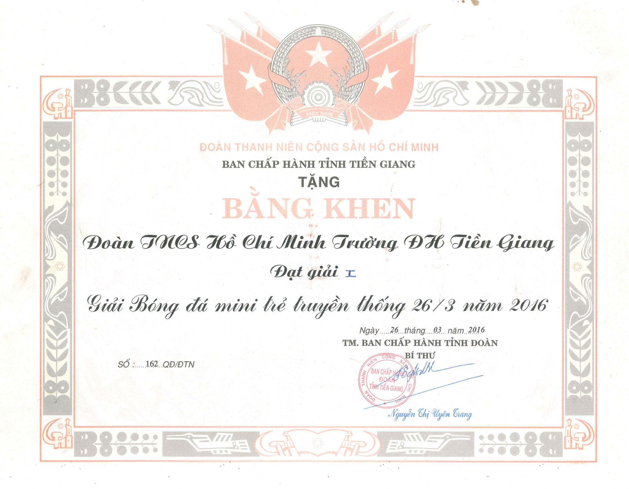 Giấy khen Ban Chấp hành tỉnh Tiền Giang năm 2016