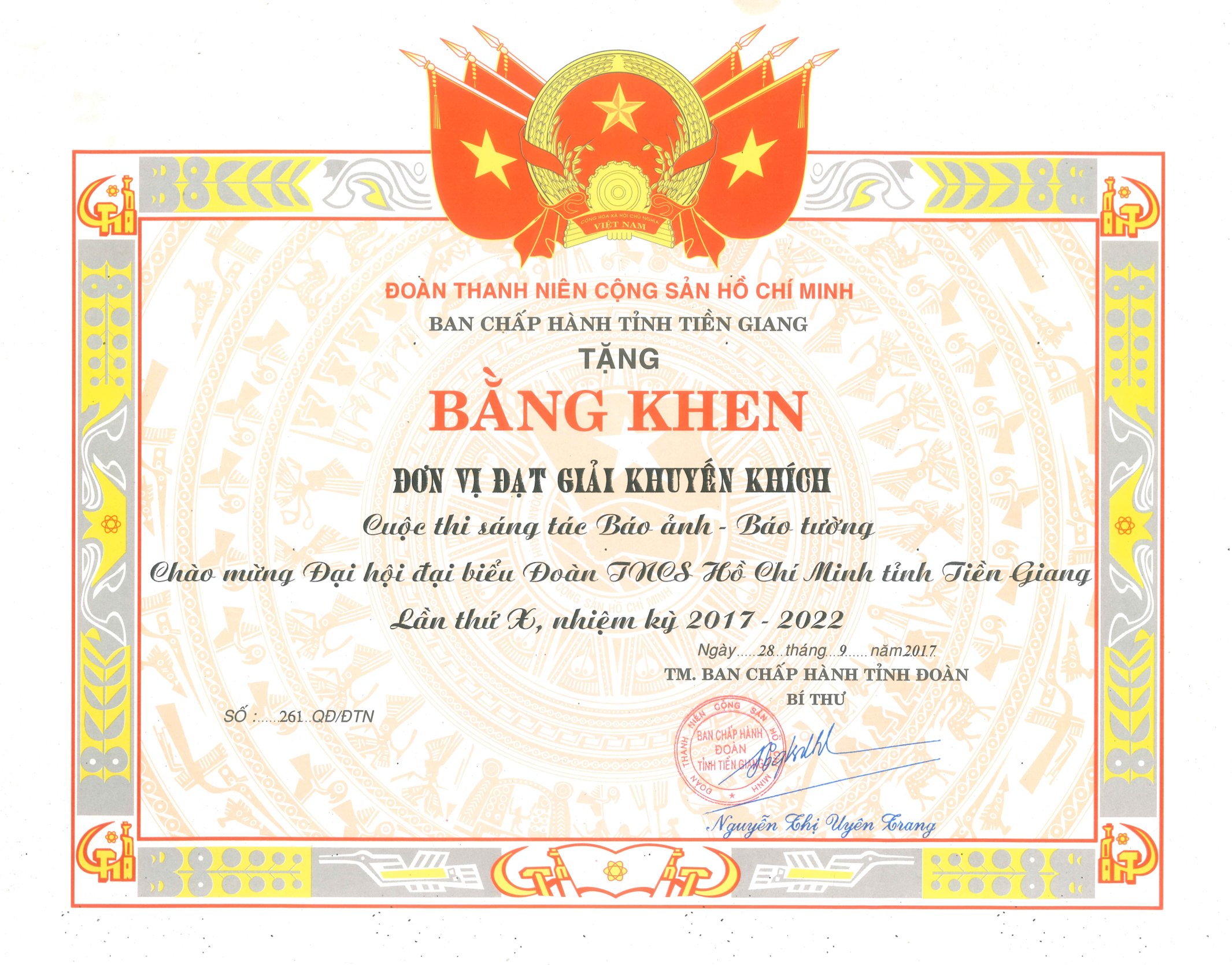 Giấy khen Ban Chấp hành tỉnh Tiền Giang năm 2017