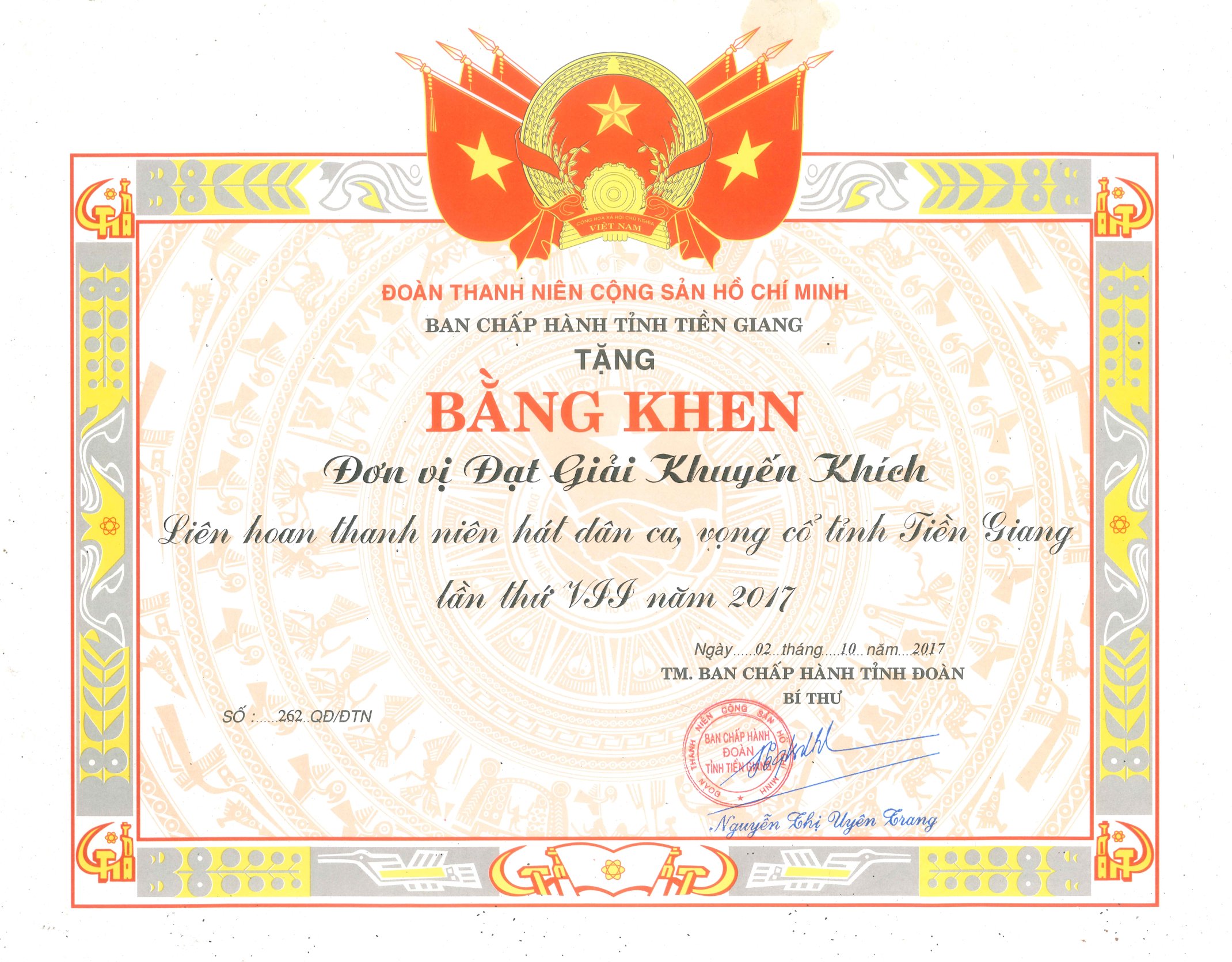 Giấy khen Ban Chấp hành tỉnh Tiền Giang năm 2017
