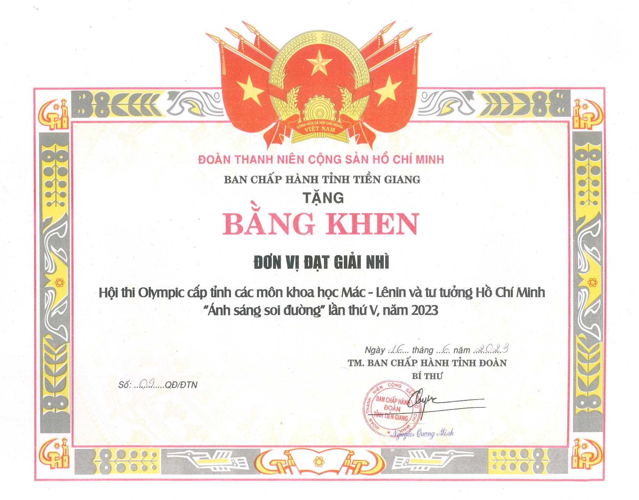 Đơn vị đạt giải Nhì Hội thi Olympic cấp tỉnh các môn khoa học Mác - Lênin và tư tưởng Hồ Chí Minh Ánh sáng soi đường lần thứ V, năm 2023