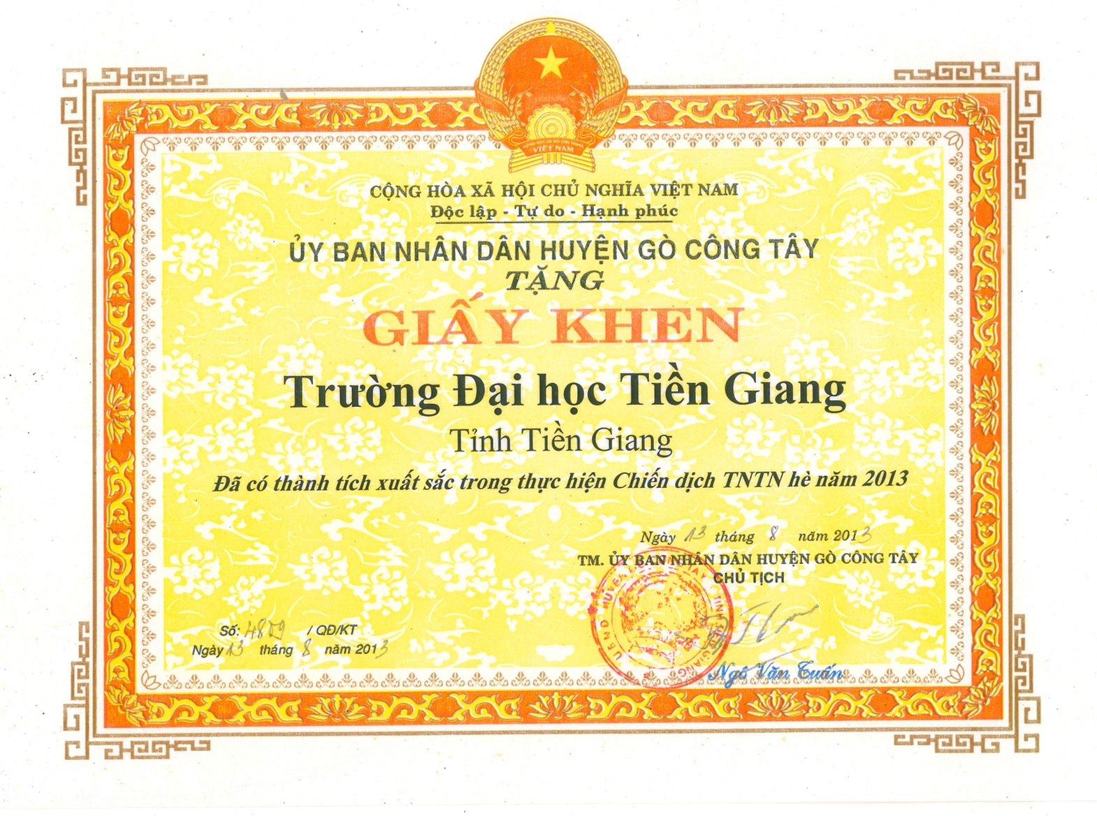 Giấy khen Ủy ban Nhân dân huyện Gò Công Tây năm 2013